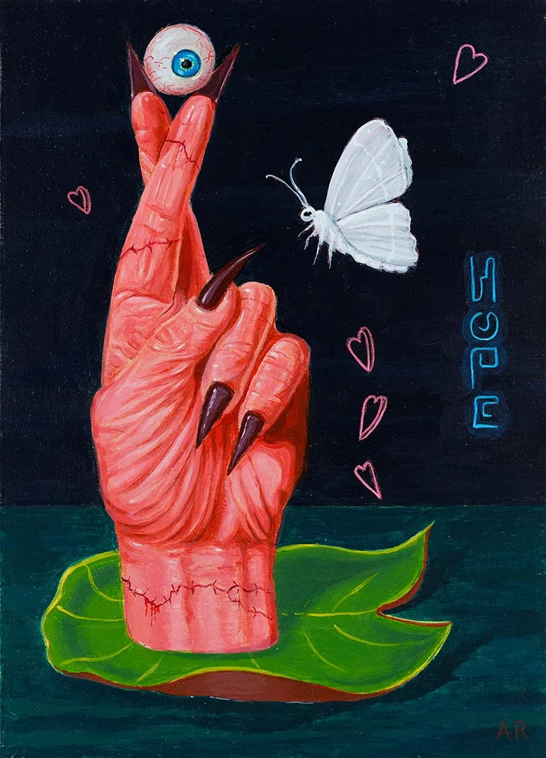Amy is a surrealist painter. Her paintings are often chance meetings of creatures of her own making. Amy’s work references the durability of nature and both the decay and creation of our cultural symbols. Amy exhibits in the United States and internationally. Her paintings have been shown in the Surreal Salon 11, 12 an 13 at the Baton Rouge Gallery. Amy graduated with a BFA from Northern Illinois University and a MSOM from the Midwest College of Oriental Medicine. She lives and works in Madison, Wisconsin with her husband Roger.