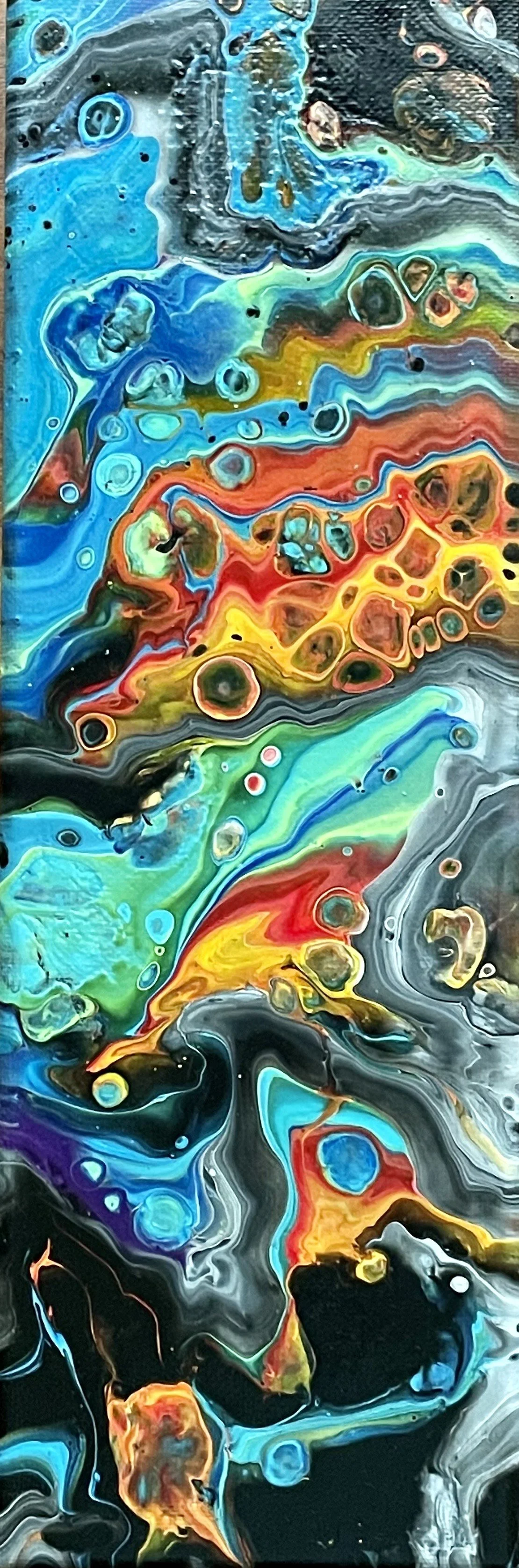 Kari spent twenty years teaching art in Oregon, where she cultivated a deep appreciation for process, observation, and creative growth. She currently teaches art through Pearson Virtual Schools, bringing visual arts education to students across diverse communities across the country. An acrylic painter, Radl is known for her years of work depicting Wisconsin 'farmscapes,' scenes populated with animals, barns, tractors, and expansive fields that reflect a quiet reverence for rural life. Recently, she has embraced abstract paint pours, exploring color, movement, and spontaneity as central elements of her practice.